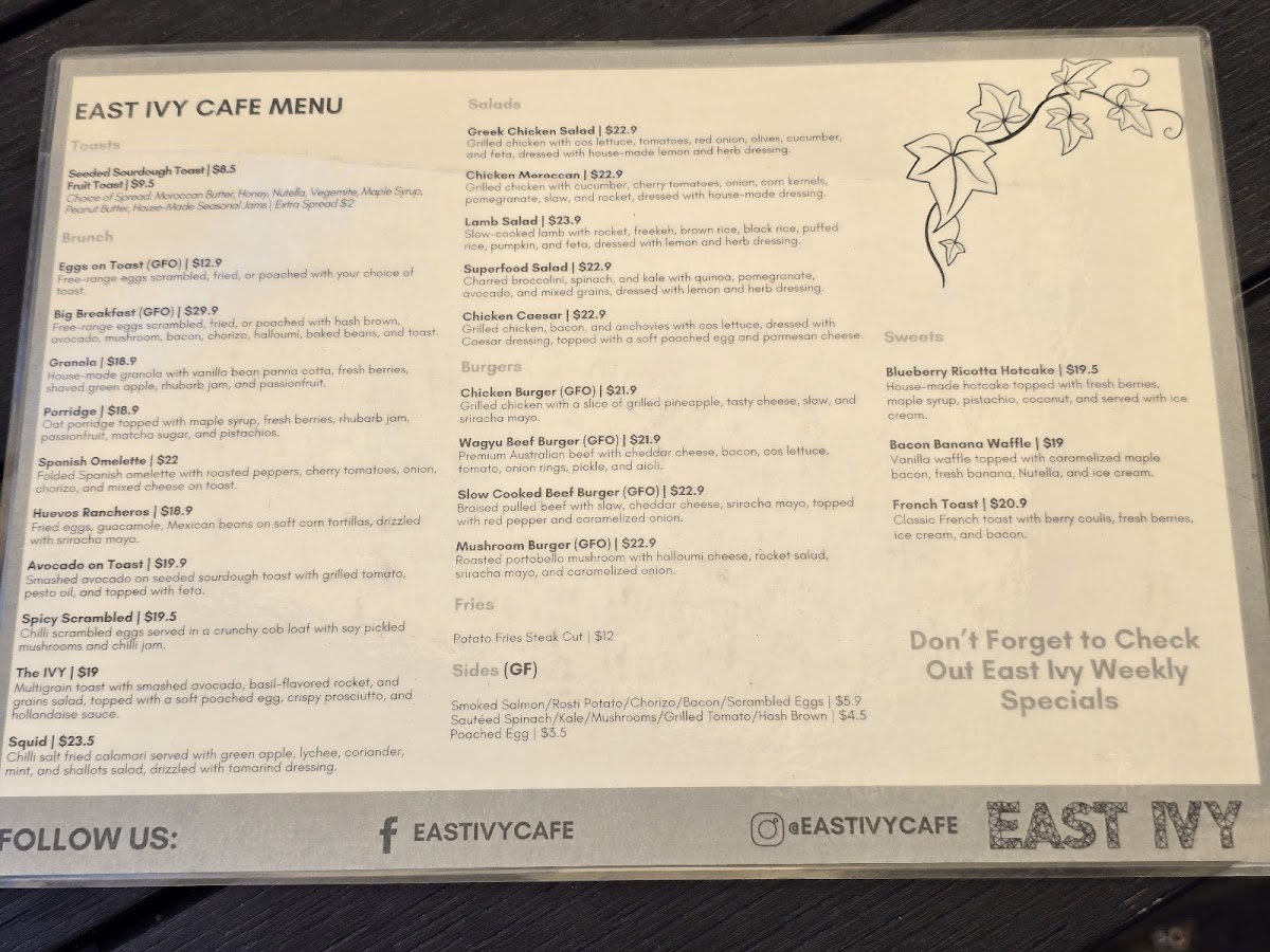 For burger enthusiasts, the selection ranges from a succulent Wagyu Beef Burger to a vegetarian-friendly Mushroom Burger. Don't miss the indulgent sweets, such as the fluffy Blueberry Ricotta Hotcake or the decadent Bacon Banana Waffle. Guests rave about their experiences, noting the excellent service, welcoming owner Michael, and the delightful coffee that perfectly complements each dish. East Ivy is more than just a cafe; it's a community hub where every meal leaves you craving more.