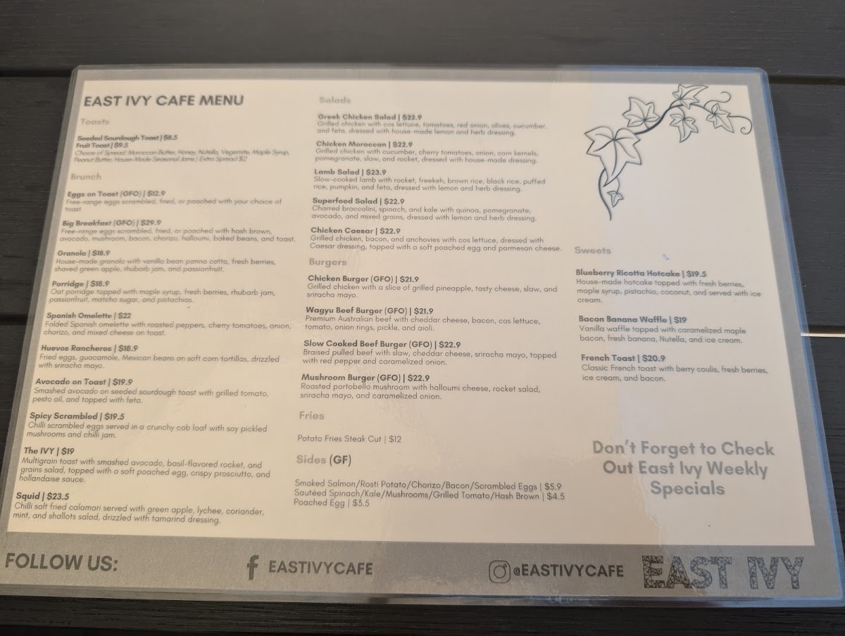Introducing East Ivy, a charming cafe located at 6 Burton Cres, Ivanhoe East, VIC. This local gem offers an inviting atmosphere and a menu that celebrates fresh ingredients with a creative twist. The brunch options are a delight, featuring classics like Eggs On Toast and the hearty Big Breakfast, as well as standouts like Huevos Rancheros and Spicy Scrambled The Ivy Squid.